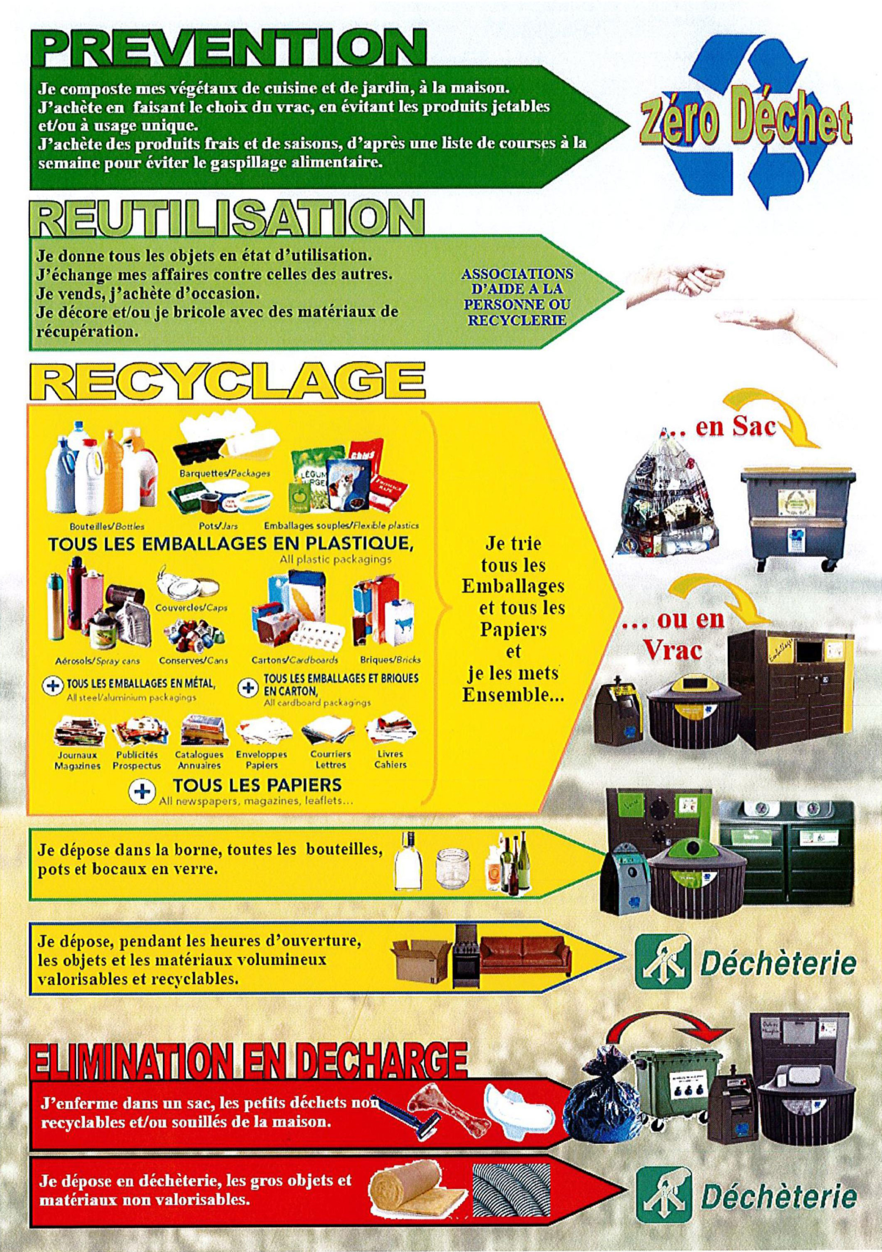 Ainsi, vous pouvez venir y déposer vos verres, vos déchets en SACS NOIRS et vos emballages recyclables (bidons, papiers, journaux, emballages…) EN VRAC dans les containers jaunes.